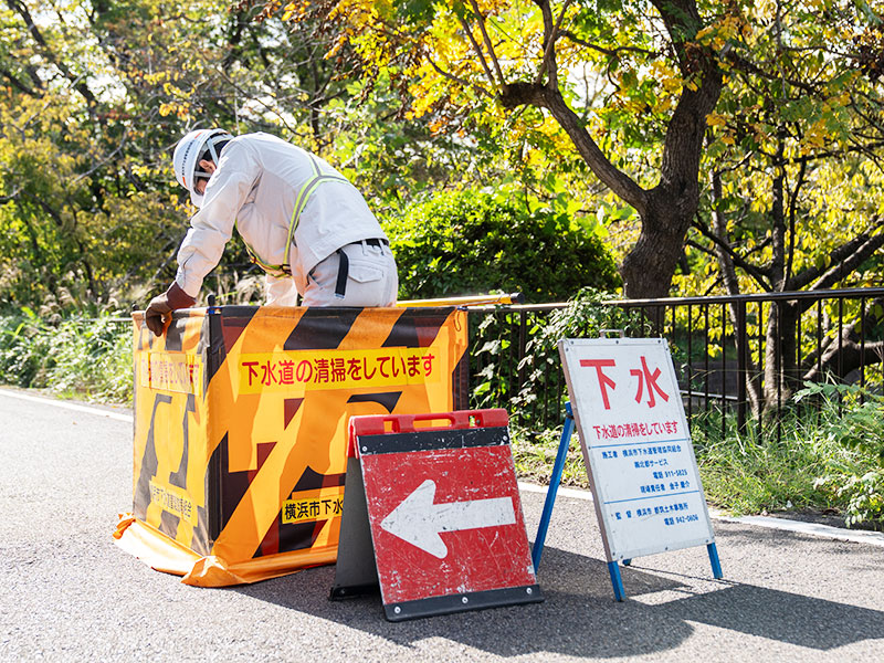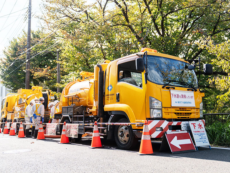 - 下水管にたまった土砂・油脂を取り除き、管の流れを正常に戻す